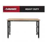 (101) Husky 72 in. W x 23 in. D Adjustable Height Black Workbench, Solid Wood Top for Heavy Duty Welded Steel Garage Storage System