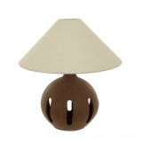 Artistic Design: Features a unique ceramic base with intricate cut-out detailing and a matte brown and natural finish.