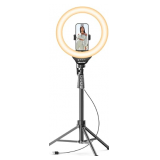 This all-in-one UBeesize Video Lighting Kit is a versatile tool for content creators, photographers, and professionals. It features a high-performance 12-inch LED ring light that offers three distinct color modes (warm, cool, and daylight)