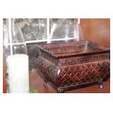 Vintage Mahogany & Rattan Desk w/Pull Down