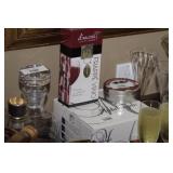 Pots, Pans, Dishware, Glass Bottles, Oil & Vinegar Jars