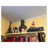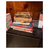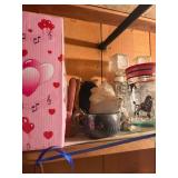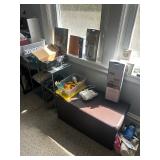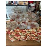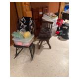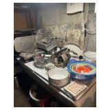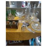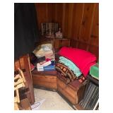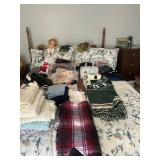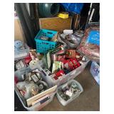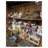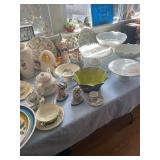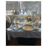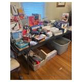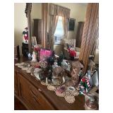 Costume jewelry, lots of Christmas, button collection, patches, music boxes, trains, lots of collectible bric-a-brac, figurines, vintage vanity set, ruby glass, green glass, loads of clothing, shoes, bags, scarves, sunglasses, Bose, cameras & other vintage electronics, toys, games, dolls, records, books, Morris Katz & other art, bedding, flatware, a lot of boxed kitchen items & gift items, crystal, beautiful dining room table & chairs, china closet & server, sofa & loveseat, tables, lamps, bedroom furniture, rocking chair, microfiber sofa, TV stands, desks, storage ottomans, outdoor table & chairs & tons more |