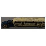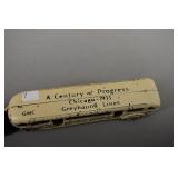 Go To www.bhdauctions.com To Bid Catalog: 1 The Incredible Hulk Metal Lunch Box w Thermos 2 Transformers Metal Lunch Box w Thermos 3 Wild Frontier & How The West Was Won Metal Lunch Boxes 4 3 Assorted Metal Lunch Boxes 5 Masudaya (Modern Toys) Z-101 tin friction flying saucer. 6 Vintage tin friction "Aerial Ladder Fire Engine" toy with its original box. 7 Arcade Cast Iron GMC Greyhound Lines Bus toy, created for the 1933 Chicago "A Century of Progress" World's Fair. 8 Vintage AHI Shadow Box Series metal miniature toy trucks, made in Japan. 9 Assorted Vintage Children's Games 10 Chicken on a Nest glass candy container, attributed to the Victory Glass Company. 11 Windsor House clear glass perfume or cologne bottle designed in a shape resembling opera glasses. 12 Glass rabbit candy container made by the Victory Glass Co. Circa 1920's 13 Knox Hats Advertising Santa Claus Plastic Bank 14 18 Assorted Antique Santa Claus Postcards 15 Assorted Hard Plastic Santa Claus Figures and More 16 NOS Penn Motor Oil Cardboard Advertising Sign 17 Hires R-J Rootbeer Painted Metal Sign 18 Wildroot Barber Shop Painted Metal Sign 19 Nixon Motor Hotel Painted Wood Sign 20 1925 PA Matched Pair License Plates 21 1910 Mass Porcelain License Plate 22 1913-15 PA License Plates 23 Assorted Vintage License Plates 24 Vintage Paper Lot and Moxie Tip Tray 25 Lot Arbuckles Ariosa Coffee Advertising Trade Cards 26 Vintage Packs of Cigarettes and Pin Back Buttons 27 NOS Crate Labels 28 Assorted Blocks US Stamps and Others 29 Goebel Hummel "Madonna Holding Child" figurine 30 3 Assorted Hummel Goebel Figurines 31 4 Assorted Hummel Goebel Figurines 32 3 Assorted Hummel Goebel Figurines 33 Battlestar Galactica Metal Lunch Box 34 Batman and Robin Metal Lunch Box 35 Star Trek and Mork & Mindy Metal Lunch Boxes 36 3 Assorted Metal Lunch Boxes 37 6 Gallon 2 Tone Crock 38 8 Gallon Crock - Cracked 39 5 Gallon 2 Tone Crock 40 2 Old Railroad Lanterns - PRR 41 Chalwyn railway or road warning lantern. 42 3 Antique Lanterns 43 AGM Model 2572 and Tilley Pressure Lanterns 44 3 Early Bottles 45 Phoenix Glass Anchor Hocking Centennial Vase 46 1906 Pittsburgh Commandery Plates 47 Marble annular revolving clock. 48 Green Depression Glass Oil Lamp 49 Vintage Bakelite Rotary Dial Phone 50 Art Nouveau patinated bronze bust titled "L'Hiver" (Winter) by the German sculptor Franz Iffland (1862-1935). 51 3 Vintage Nude / Girlie Magazines 52 Lot Assorted Comic Books 53 Lot Assorted Comic Books 54 Vampirella Magazines and Assorted Comic Books 55 Soeur Sourire's 1963 debut album, commonly known in English-speaking countries as The Singing Nun. 56 Assorted 33 1/3 RPM Records 57 Boyhood Days and Other Verses Book Presented to Andrew Mellon 1925 58 American Indian Penny Collection - Framed 59 Hopi Kachina "Dancing Bear" hand-carved doll and Decorative Hatchets 60 Vintage BKA 98 Colt 45 Revolver Replica Prop Gun 61 Lionel Seaboard RSC-3 Diesel Engine w Box 6-18838 62 Lionel Boston & Maine GP-9 Engine 6-8654 w Box 63 2 Sealed Boxes Score 1991 Major League Baseball Cards 64 Unopened box of 1993 Pacific Texas Express Nolan Ryan baseball card packs. 65 4 Expressions of Youth Hummel Goebel Figurines 66 3 Assorted Hummel Goebel Figurines 67 3 Assorted Hummel Goebel Figurines 68 4 Assorted Hummel Goebel Figurines 69 Planet of the Apes Metal Lunch Box w Thermos 70 The A Team Metal Lunch Box 71 Superman and Rambo Metal Lunch Boxes 72 3 Assorted Metal Lunch Boxes 73 Planters Peanut Painted Metal Sign 74 Pontiac authorized service sign featuring the classic Native American chief logo. 75 Brown Shoe Co Painted Metal Sign 76 Mikes T.V. - Radio TV Service Advertising Clock 77 Philco Car Radio and Marx Toy Car 78 Electromobile and Black Diamond Coal Truck (missing wheel) 79 3 Vintage Rubber Toy Molds 80 Marx Pitch Em Hit Em Catch Em Game 81 Heinz Advertising Cans and Bottle 82 Popular Science & Modern Mechanix Magazines 83 Postcards and Vintage Paper Items 84 Travel Related Vintage Paper Items 85 1920's Photograph Albums 86 1961 Schlitz Brewing Company motion clock. 87 Antique Advertising Bottles and More 88 Bike License Plates 89 Advertising Pieces 90 3 Jars of Marbles 91 Torpedo and Sunken Treasure Games 92 Assorted Toy Vehicles 93 REPLICA 45 US Army Pistol - NOT REAL 94 Genuine U.S. government form used to prescribe medicinal liquor during the Prohibition era 95 French Bread Painted Tin Box 96 Hires R-J Rootbeer Painted Metal Sign 97 Lionel 6-18576 O Gauge Southern Pacific GP-9 Non-Powered Diesel Locomotive #2385. 98 Lionel Great Northern EP-5 electric locomotive model, specifically the 6-8762 number version produced around 1988 99 1994 Don Russ Baseball Cards 100 1991 Topps Baseball Cards 101 3 Angel Hummel Goebel Figurines 102 3 Assorted Hummel Goebel Figurines 103 4 Assorted Hummel Goebel Figurines 104 2 Hummel Goebel Figurines 105 Universal Movie Monsters Metal Lunch Box 106 Wonderbug The Kroft Supershow Metal Lunch Box w Thermos 107 Walt Disney and Miss America Metal Lunch Boxes 108 3 Assorted Metal Lunch Boxes 109 Chesterfield Cigarettes Painted Metal Sign 110 Clabber Girl Baking Powder Metal Sign 111 School Children Ride With Us Framed Poster 112 18 Assorted Antique Santa Claus Postcards 113 Santa Claus Tags and Cardboard Christmas Village ? 114 Marx Historic Guns - 4 NOS In Sealed Package 115 Marx Plastic Figures and More 116 Assorted Vintage PA License Plates 117 Texas and NJ License Plates 118 Koehler's Cone Top Beer Can 119 Otto's Dairy Light Up Milk Sign 120 Children's Items 121 Assorted 8MM Movies 122 Old Mexico Stock Certificates 123 Sports Related Paper 124 Box Lot Toys and More 125 Box Lot Vintage Paper Items 126 Box Lot Toys and Collectibles 127 Assorted Toy Vehicles 128 Vintage Children's Games 129 National Biscuit Company Box 130 Box Lot Assorted Small Items 131 Poosh Em Up Games and Punch Cards 132 Lionel Trains No.256 Freight Station In OB 133 Lionel Famous American Railroad Series Santa Fe 4-6-4 Engine & Tender 6-8900 w OB 134 Lionel New York Centr