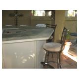 | This home has a bit of everything, from modern to retro. To highlight - Stainless steel bottom freezer refrigerator; black dishwasher; washer and dryer; casual upholstered curved sofa; white upholstered wing-back chair with large ottoman; paint-able brass base coffee table with thick rectangle glass top and two matching end tables; hanging brass potting planters; oak cabinets; traditional dining room table with four upholstered/rattan chairs; two queen mattresses; dressers of various sizes, three with mirrors; quilt racks; much women's clothing and shoes; full lead crystal chandelier; outside patio bar; wrought iron patio sets and lounger; many planting pots and stands; outdoor decor; camping pans; much costume jewelry including sterling (brought in morning of sale); adult costumes; fur coats; small display cabinet; small desk; jewelry chest; much household items, even a pair of tap shoes! |