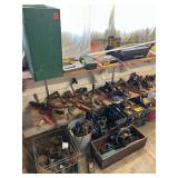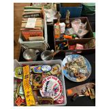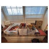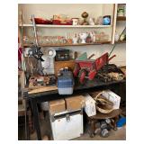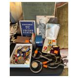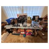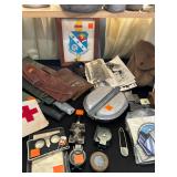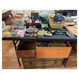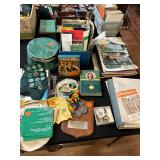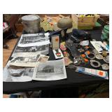 Everything else: decor, paintings, antiques, Mccoy, Roseville and Haeger Pottery, crystal, military items including WWI and WWII, tin type photos, primitives, art glass, barware, Toby mugs, vintage Boy Scouts and Girl Scouts items, ammo crates, vintage travel decor and ephemera, antique golf clubs, vintage wood bows, vintage police uniform items, handcuffs and collectibles, old matchbooks and ashtrays, vintage Russian and Eastern decor, lots of antique and vintage photos, modern and vintage cameras, dental models and instruments, electronics, board games, Christmas Easter and Halloween Decor (vintage and newer), purses, vintage gloves, embroidered handkerchiefs, unframed needlepoint crewel work and embroidery, antique lace, quilts, afghans, coverlets, throws, blankets, decorative pillows, old full scrapbooks, vintage fraternity and sorority items, suitcases, purses, vintage ladies and mens hats, men’s and women’s clothing, ties, shoes, vintage perfumes, huge selection of vintage eyeglasses, vanity items, towels, linens, vintage postcards, greeting cards, office supplies, tons of hand tools, yard tools, vintage tools, Underwood typewriter, sewing machines, bicycles, some vintage toys, fire pit, vintage fishing poles and tackle boxes, fly fishing reels, lures, smoker, ladders and so much more! *All jewelry kept offsite until day of sale **FINE PRINT: Cash or Venmo only. NO EARLY SALES. No holds or prices given prior to sale.