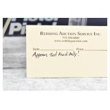 Redding Auction Service Inc. establishes no warranties or depictions concerning the fitness for use, safeness to fire, to store, or reliability of any firearm, ammunition, parts, parts of components of any lot. Any use is entirely at your risk. Redding Auction Service Inc. expressly disclaims any liability whatsoever for accident, injury or damage resulting to any person or property from the use or storage of any such lot.
