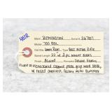 Firearms #211-426 – To Be Sold at 12:30 P.M. (Approx.): 211R. Remington – Mod. 760 Gamemaster “Low Comb” (Corn Cob) – 222 Rem. Cal. Pump Action Rifle – w/22” Barrel w/Blade Front Sight – Blued Finish – w/Pistol Grip Wood Stock and Corn Cob Forearm w/Factory Metal Butt Plate – w/Factory Detachable Magazine – w/2-Piece Bushnell Base Mount and Scope Rings – Only 2,033 Low Comb 222 Rem. Were Manufactured – Manufactured in 1957 212R. Remington – Mod. 760 Gamemaster “Low Comb” (Corn Cob) – 244 Rem. Cal. Pump Action Rifle – w/22” Barrel w/Blade Front and Adjustable Rear Sights – Blued Finish – w/Pistol Grip Wood Stock and Corn Cob Forearm w/Factory Metal Butt Plate – w/Factory Detachable Magazine – Only 2,101 in 244 Rem. Were Manufactured in this Grade from 1956-1959 – Manufactured in October of 1956 213R. Remington – Mod. 760 Gamemaster “Low Comb” (Corn Cob) – 257 Roberts Cal. Pump Action Rifle – w/22” Barrel w/Beaded Front and Buckhorn Rear Sights – Blued Finish – w/Pistol Grip Wood Butt Stock and Ribbed Wood Forearm w/Factory Aluminum Butt Plate – w/Factory Magazine – Only 4,744 760 A Grade Low Comb Rifles Were Manufactured in 257 Roberts 214R. Remington – Mod. 760 Gamemaster (Corn Cob) – 300 Savage Cal. Pump Action Rifle – w/22” Barrel w/Blade Front and Adjustable Rear Sights – Blued Finish – w/Pistol Grip Wood Stock and Corn Cob Forend w/Factory Metal Butt Plate – w/Factory Detachable Magazine – Manufactured from 1952-1958 215R. Remington – Mod. 760 Gamemaster “Low Comb” (Corn Cob) – 35 Rem. Cal. Pump Action Rifle – w/22” Barrel w/Blade Front and Adjustable Rear Sights – Blued Finish – w/Pistol Grip Wood Stock and Corn Cob Forearm w/Factory Metal Butt Plate – w/Factory Detachable Magazine – Manufactured in 1952 216R. Remington – Mod. 760 Gamemaster (Corn Cob) – 270 Win. Cal. Pump Action Rifle – w/22” Barrel w/Beaded Front and Adjustable Rear Sights – Blued Finish – w/Pistol Grip Wood Stock and Corn Cob Forearm w/Factory Metal Butt Plate – w/Factory Detachable Magazine – w/Weaver K3-60B Scope – Manufactured in 1953 217R. Remington – Mod. 760 Gamemaster ADL (5-Diamond) – 222 Rem. Cal. Pump Action Rifle – w/22” Barrel w/Blade Front and Adjustable Rear Semi-Buckhorn Sights – Blued Finish – w/Checkered Capped Pistol Grip Wood Stock and 5 Diamond Forearm w/Factory Metal Butt Plate – w/Factory Detachable Magazine – Only 947 Were Manufactured in 1957 Only! 218R. Remington – Mod. 760 Gamemaster (5-Diamond) – 30-06 Cal. Pump Action Rifle – w/22” Barrel w/Beaded Front and Adjustable Rear Ramp Sights – Blued Finish – w/Checkered Capped Pistol Grip Wood Stocks w/Factory Aluminum Butt Plate – w/Factory Magazine 219R Remington – Mod. 760 Gamemaster (Standard) – 223 Rem. Cal. Pump Action Rifle – w/22” Barrel w/Beaded Front and Adjustable Rear Sights – Blued Finish – w/Checkered Capped Pistol Grip Wood Stocks w/Factory Butt Plate – w/Factory Magazine – Only 2,723 223 Rem. 760 Standards Were Manufactured Between 1964-1969 220R. Remington – Mod. 760 Gamemaster (Standard) – 308 Win. Cal. Pump Action Rifle – w/22” Barrel w/Blade Front and Adjustable Rear Sights – Blued Finish – w/Deluxe Checkered Capped Pistol Grip Wood Stocks w/Factory Metal Butt Plate – w/Factory Detachable Magazine – Only 7,794 Were Manufactured in this Checkering Pattern – Manufactured in 1957 221R. Remington – Mod. 760 Gamemaster (Standard) – 35 Rem. Cal. Pump Action Rifle – w/22” Barrel w/Beaded Front and Adjustable Rear Sights – Blued Finish – w/Checkered Capped Pistol Grip Wood Stocks w/Factory Butt Plate – w/Factory Detachable Magazine – w/Leupold Scope Base – Manufactured Between 1952-1967 222R. Remington – Mod. 760 Gamemaster (Standard) – 280 Rem. Cal. Pump Action Rifle – w/22” Barrel w/Blade Front and Adjustable Rear Sights – Blued Finish – w/Deluxe Checkered Capped Pistol Grip Wood Stocks w/Factory Metal Butt Plate – w/Factory Detachable Magazine – Only 804 Were Made in this Checkering Pattern Between 1964-1967 223R. Remington – Mod. 760 Gamemaster Standard Carbine – 30-06 Cal. Pump Action Rifle – w/18½” Barrel w/Beaded Front and Adjustable Rear Sights – Blued Finish – w/Checkered Capped Pistol Grip Wood Stocks w/Factory Aluminum Butt Plate – w/Factory Magazine – Only 6,095 760 Standard Carbines Were Manufactured in 30-06 Cal. Between 1964-1967 224R. Remington – Mod. 760 Gamemaster (Press-Checkered) – 243 Win. Cal. Pump Action Rifle – w/22” Barrel w/Blade Front and Adjustable Rear Sights – Blued Finish – w/Deluxe Pressed Checkered Capped Pistol Grip Wood Stocks w/Factory Butt Plate – w/Factory Detachable Magazine – Manufactured in 1968 225R. Remington – Mod. 760 Gamemaster (Press-Checkered) – 6mm Rem. Cal. Pump Action Rifle – w/22” Barrel w/Beaded Front and Adjustable Rear Ramp Sights – Blued Finish – w/Checkered Capped Pistol Grip Wood Stocks w/Factory Butt Plate – w/Factory Magazine – Unfired w/Factory Box and Manual – Only 10,519 6mm Rem. 760 Gamemasters Were Manufactured! 226R. Remington – Mod. 870 Wingmaster – 410ga. 3” Pump Action Shotgun – w/25” Full Choke Vent Rib Barrel w/Dual Bead Sights – Blued Finish – w/Checkered Capped Pistol Grip Wood Stocks w/Factory Butt Plate – Unfired w/Factory Box 227R. Remington – Mod. 870 LW Wingmaster – 28ga. 2¾” Pump Action Shotgun – w/25” Full Choke Vent Rib Barrel w/Bead Sight – Blued Finish – w/Deluxe Checkered Capped Pistol Grip Wood Stocks w/Factory Butt Plate – Manufactured 10-85 228R. Remington – Mod. 870 Wingmaster Magnum – 20ga. 3” Pump Action Shotgun – w/26” Rem. Choked Vent Rib Barrel w/Dual Bead Sights – Blued Finish – w/Checkered Capped Pistol Grip Wood Stocks w/Factory Recoil Pad 229R. Remington – Mod. 870 Wingmaster – 12ga. 2¾” Pump Action Shotgun – w/30