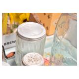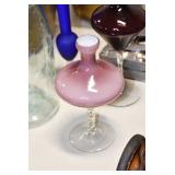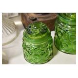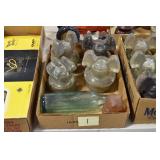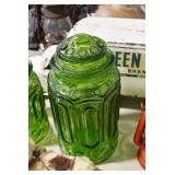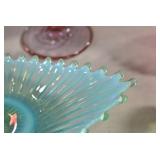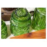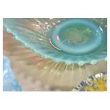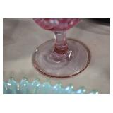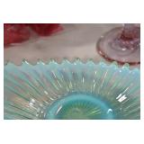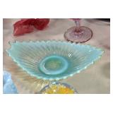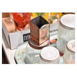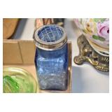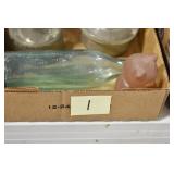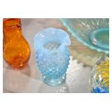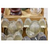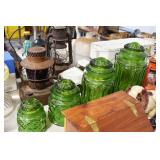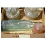 Antique Glassware: Uranium Glass, Blue Glass, Carnival Glass, Pink Depression Glass, Peanut Butter Glasses, Glass Bear Bank, Old Blue Jars, Glass Insulators, Vintage Glass Bottles, Art Glass, Cranberry Hobnail Glass, Lenox Glass, Glass Oil Lamps, and Other