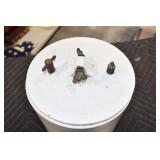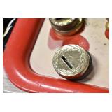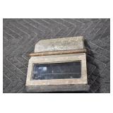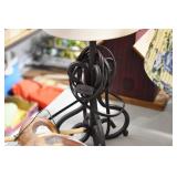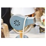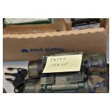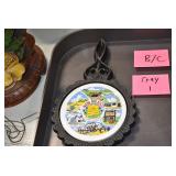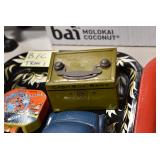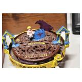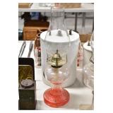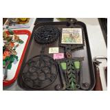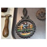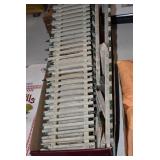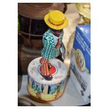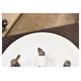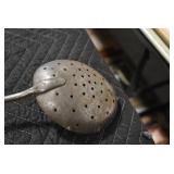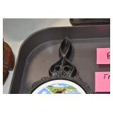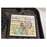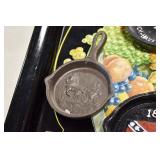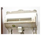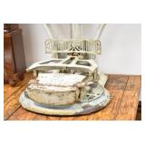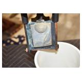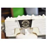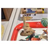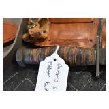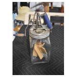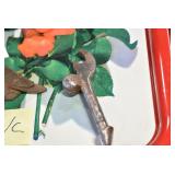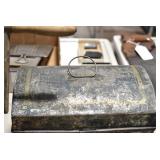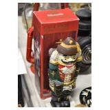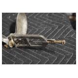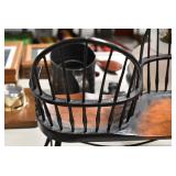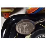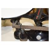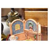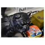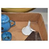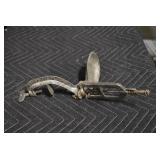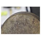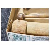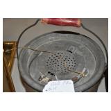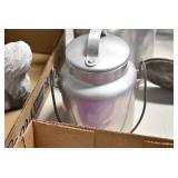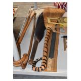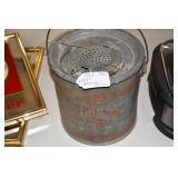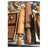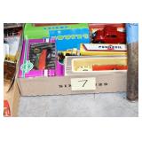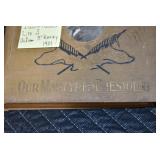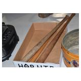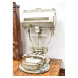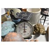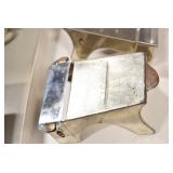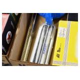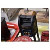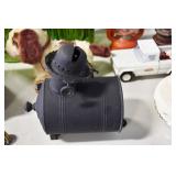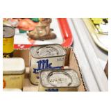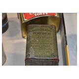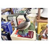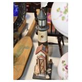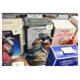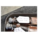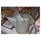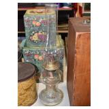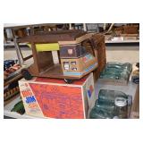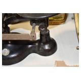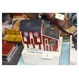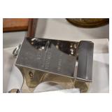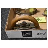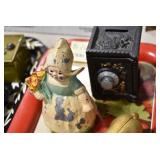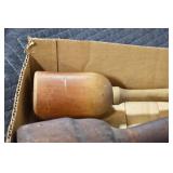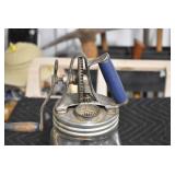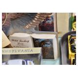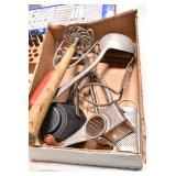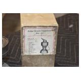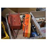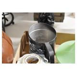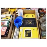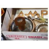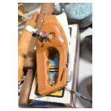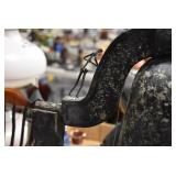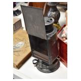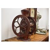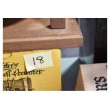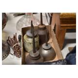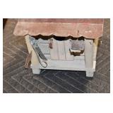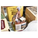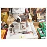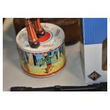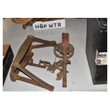 Antiques and Collectibles: (19) Various Wildlife and Other Decanters, Woodruff & Edwards Double Fly Wheel Mill (From Country Store in Table Rock, PA), Pottery Crocks and Jugs, Pottery Bowls, Hubley Cast Bookends, Table Lamps, Lanterns, Cast Banks, Large Amount of Old Dated Books, Local and Other Old Photographs, Glass Butter Churn, Vintage Scales, Animal Figures, Miniature Wooden Reverse Seat Bench, Large Cast Bell, Vintage Kitchen Utensils, Large Amount of Advertising Tins, Metal Bunny Candy Mold, Vintage Scooter, Winchester Flashlights, Woodware, Sad Irons, Cast Fry Pans, Marbles, Old Microscope in Wooden Carrying Case, Indian Dolls, Wooden Bird Houses, Miniature Brass Cannon, Carved Wooden Face Masks, Cast Pheonix Boot Jack, Copper and Brass Items, Lionel Cleaning/Lubrication Kit, Hatchets, Woven Baskets, Vintage and Modern Tools, Wooden Butter Molds, Graniteware, Cast Pot Holders, Folding Rulers, License Plates, Cast Doorstops, Brass Bells, (8) Lots of Cat’s Meow Houses, Framed Prints and Pictures, Pot Metal Lady Figurine Oil Lamp w/Rose Decorated Half Shade w/Prisms, and Other