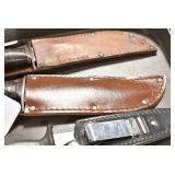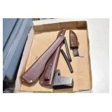 Sporting Related: Large Amount of Folding, Pen, and Sheath Knives, Knife Sets, Ammo Cans, Gun Cleaning Supplies, Ammunition, Magazines, Holsters, Remington and Western Wooden Advertising Boxes, Cartridge Boxes, Animal Traps, Minnow Buckets, and Other
