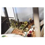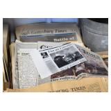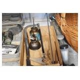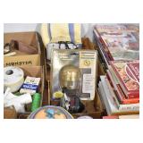 Antiques and Collectibles: (19) Various Wildlife and Other Decanters, Woodruff & Edwards Double Fly Wheel Mill (From Country Store in Table Rock, PA), Pottery Crocks and Jugs, Pottery Bowls, Hubley Cast Bookends, Table Lamps, Lanterns, Cast Banks, Large Amount of Old Dated Books, Local and Other Old Photographs, Glass Butter Churn, Vintage Scales, Animal Figures, Miniature Wooden Reverse Seat Bench, Large Cast Bell, Vintage Kitchen Utensils, Large Amount of Advertising Tins, Metal Bunny Candy Mold, Vintage Scooter, Winchester Flashlights, Woodware, Sad Irons, Cast Fry Pans, Marbles, Old Microscope in Wooden Carrying Case, Indian Dolls, Wooden Bird Houses, Miniature Brass Cannon, Carved Wooden Face Masks, Cast Pheonix Boot Jack, Copper and Brass Items, Lionel Cleaning/Lubrication Kit, Hatchets, Woven Baskets, Vintage and Modern Tools, Wooden Butter Molds, Graniteware, Cast Pot Holders, Folding Rulers, License Plates, Cast Doorstops, Brass Bells, (8) Lots of Cat’s Meow Houses, Framed Prints and Pictures, Pot Metal Lady Figurine Oil Lamp w/Rose Decorated Half Shade w/Prisms, and Other
