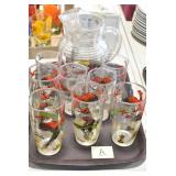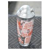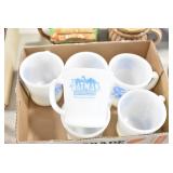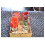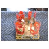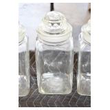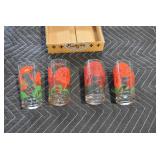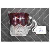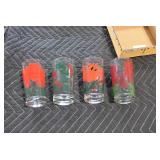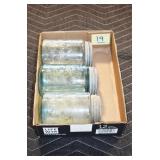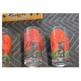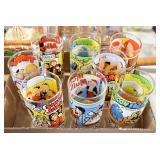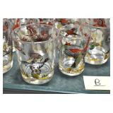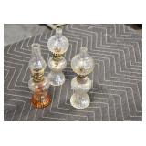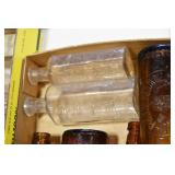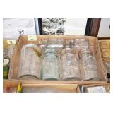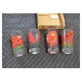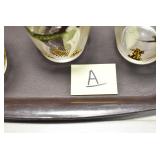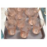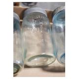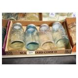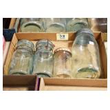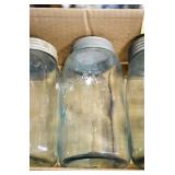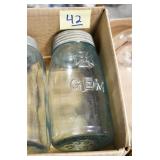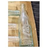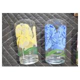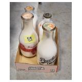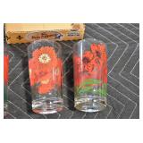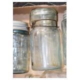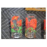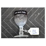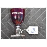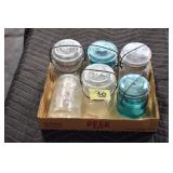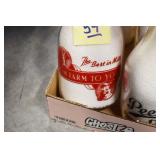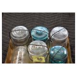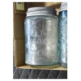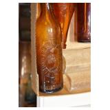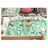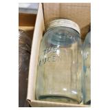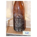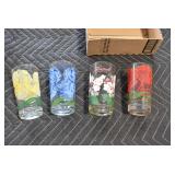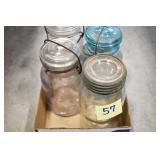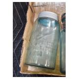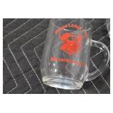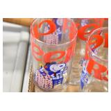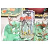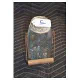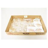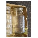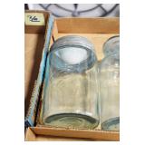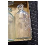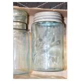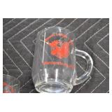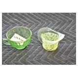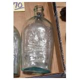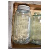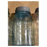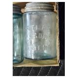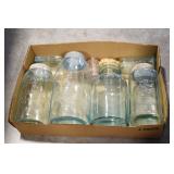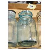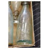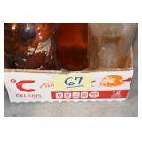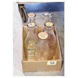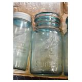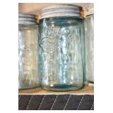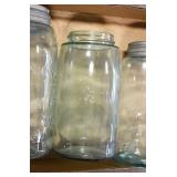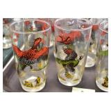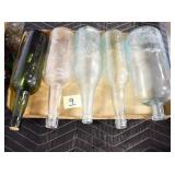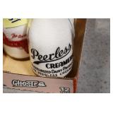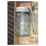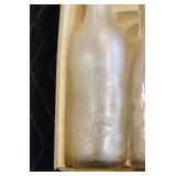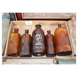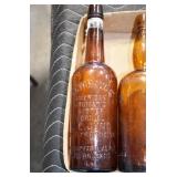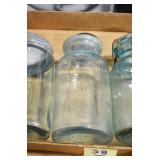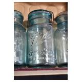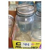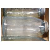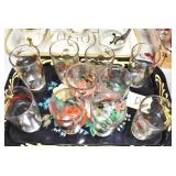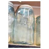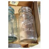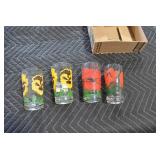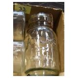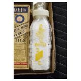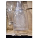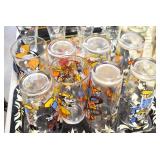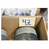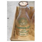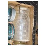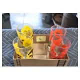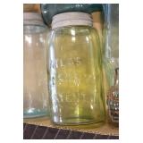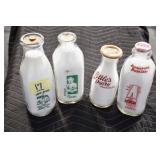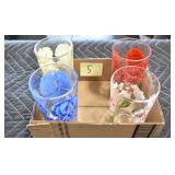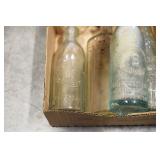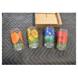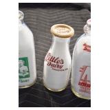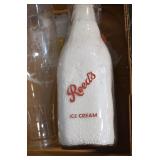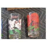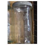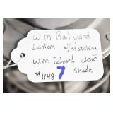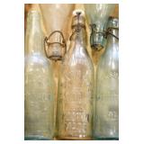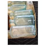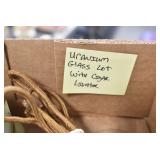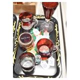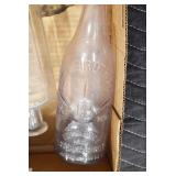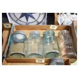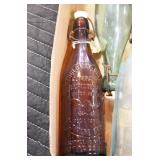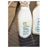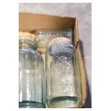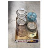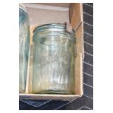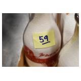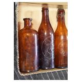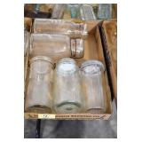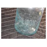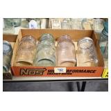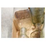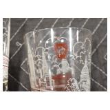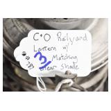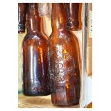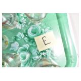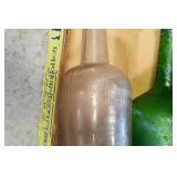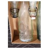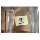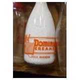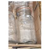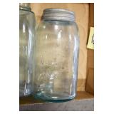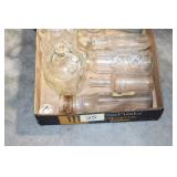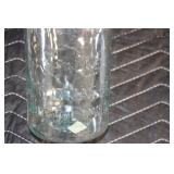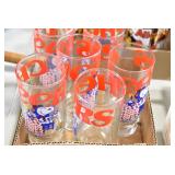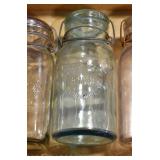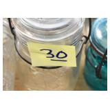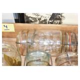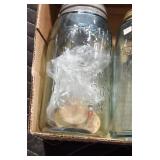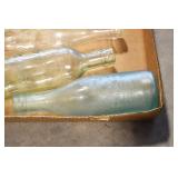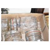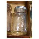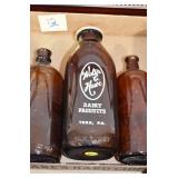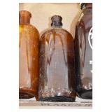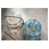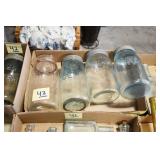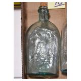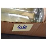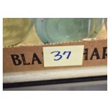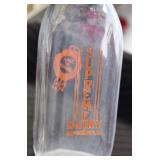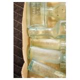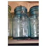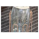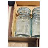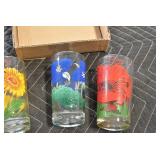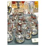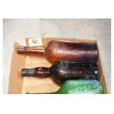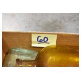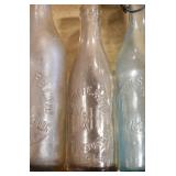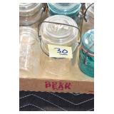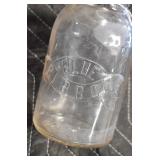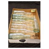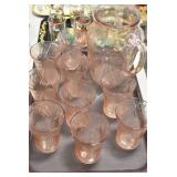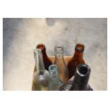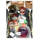 Antique Glassware: (90+) Lots of Various Clear and Colored Vintage Glass Bottles and Jars, Milk Bottles, Glass Candy Jars, Ruby Pen Mar Advertising Glasses, Uranium Glass, Pink Depression, Character Glasses, Peanut Butter Glasses, Sheffield Fine China Set, Oil Lamps, Stained Glass Hanging Lamp Shade, and Other