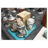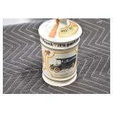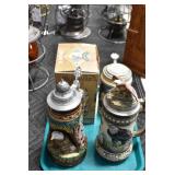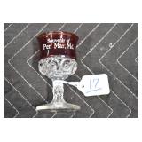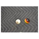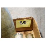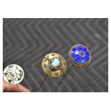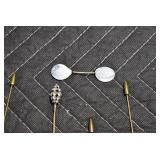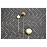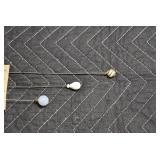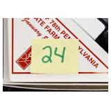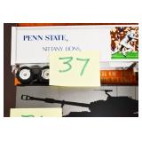 Antiques and Collectibles: (27) Lots of Various Sterling and Other Hat Pins, Hat Pin Holders, Pottery Crocks and Jugs, German Steins, Miners Safety Lamp, Copper and Brass Items, Advertising Items, Vintage Ice-Cream Scoops, Castware, Old Shoes, Various Coins, Figurines, 1865 Rare Outline Map of the United States Milton Bradley Co., Eagle Door Knockers, Indian Tomahawks, Indian Arrowheads, Old Photographs, Comic Books, Marbles, Vintage Cameras, Spurs, Stamps, Sterling Turquoise Buckle, Vintage Drum, Follow the Girls Signed and Decorated Hide, Wooden Sugar Buckets, Carved Wooden Mantle Clocks, Miniature Anvils, IH Bear, Porcelain and Graniteware, Advertising Tins, Large Amount of Autographed Baseballs, Large Amount of Old Books, Gun Related Books, Military Books, Penn State College Tickets from 1927-1930, Framed and Un-Framed Prints and Pictures, Large Amount of Signed/Autographed Photographs, and Other