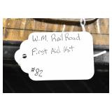 Railroad Items: (20) Various Railroad Lanterns, (6) Various Railroad Locks, Railroad First Aid Kits, West Virginia Railroad Stamp, Railroad Oil Cans, Large Amount of Railroad Tools, Train Clock, Trains, Railroad Meromelia, and Other