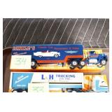 Collectible Toys: (38) Various Winross Trucks in Boxes, (21) Barbie Dolls New in Box, Diecast Toy Cars and Trucks, Vintage Tin Toys, 1927 Lindy The New Flying Game, Model Airplane, Vintage Magic Money Puzzle Box, and Other