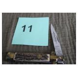 CATALOG TEXT BELOW: 1 - 44 REM MAG UMC 180 GR JKTD AMMO (41 BULLETS) 2 - 18TH CENTURY SUNDIAL/COMPASS 3 - 4" CLOSED CLASSIC STILETTO AUTOMATIC KNIFE W/ BLUE PEARL HANDLE MARKED ITALY 4 - FRANK B75 ITALIAN STILETTO STAG HORN AUTOMATIC KNIFE 5 - SCHRADE SMALL BOOT KNIFE W/ PINK HANDLE W/ BLACK DAGGER 6 - BUCK KNIFE 476T FIXED BLADE 7 - 4" CLOSED CLASSIC STILETTO AUTOMATIC KNIFE W/ BLUE HANDLE MARKED ITALY 8 - STEEL WARRIER POCKET KNIFE MARKED 440 STAINLESS 9 - EXECUTIVE ACE OF SPADE T HANDLE PUSH DAGGER 10 - SMITH & WESSON SPECIALTACTICAL POCKET KNIFE 11 - STILETTO KISSING CRANE POCKET KNIFE MARKED KC-46 GERMANY 12 - 2440 STAINLESS MILANO 22CM ITALIAN STILETTO GREEN PEARLEX AUTOMATIC KNIFE 13 - METAL SOCKET SET W/ METAL TOOL STORAGE 14 - MACHETE AND SHEALTH 18"LONG 15 - NEW/OLD STOCK WATCH REPAIR KIT 16 - 6 MISC. WALLETS/CARD HOLDERS 17 - GPX CD BOOM BOX UNTESTED 18 - VINTAGE SETH THOMAS WESTMINISTER CHIME MANTLECLOCK "LEGACY 3W MADE IN GERMANY #011283 19 - BLACK STAR FLY 3 WATT MINI AMP UNTESTED 20 - NEW/OLD STOCK PROLINE GUITAR PARTS PLUS 21 - NEW/OLD STOCK GUITAR STRINGS 22 - NEW/OLD STOCK GUITAR STRINGS 23 - STANLEY TOOL BOX W/ MISC. TOOLS 24 - GRANBY SPLASH LIFE JACKET 4 PET - SIZE LARGE NEW NEW 25 - NEW EKLIND BALL-HEX-L TOOLS 26 - VINTAGE J.A. CHAPMAN EGG BEATER STYLE HANDLE DRILL 27 - CAST IRON STILL PIGGY BANK 28 - PITTSBURGH SCREW DRIVER SET 29 - HUSKY TOOL BAG W/ GLOVES & SHOP TOWEL (NEW) 30 - AROMA HOT PLATE 31 - NEW/OLD STOCK BALL ALUMINUM CUPS 16 OZ & 24 OZ 32 - BULOVA QUARTZ BATTERY OPERATED CLOCK 33 - BLACK & DECKER CERAMIC HEATER 34 - 2 POCKET KNIVES 35 - STEEL WARRIOR COLLECTOR KNIFE COON HUNTER W. SHEATH #440 36 - GARDEN UTILITY KNIFE& HYPER TOUGH FOLDING LOCKBACK 37 - WRIGHT & SON 3.5" SPEAR POINT POCKET KNIFE W/ SHEATH _ 38 - VINTAGE 198S SEKI JAPAN 4.25 BRASS HANDLE FOLDING LOCKBACK POCKET KNIFE 39 - FOLDING BUCK HUNTING KNIFE 40 - STAINLESS STEEL OZARK TRAIL CAMPING CAMO POCKET KNIFE & SPYDERCO SMUCK BLACK POCKT KNIFE 41 - FROST CUTLERY SNAPSHOPT FOLDING KNIFE 4" STAINLESS STEEL 42 - FROST CUTLERY THE SNOOK OCOEE RIVER FIXED BLADE BLUE BONE HANDLE KNIFE MADE IN PAKISTAN 43 - DAMACUS STEEL BLADE MENS HUNTING SKINNING KNIFE MADE IN PAKISTAND 44 - VINTAGE NORTH BROS. YANKEE NO. 993 MACHNIST VISE 2 3/4" 45 - COLD STEEL FGX PUSH BLADE 46 - VINTAGE TAYLOR CUTLERY FIXED BLADE DAGGER KNIFE 9" 47 - ON STAGE MUSIC SHEET STAND 48 - FOOTNONIC II BLACK SLIP RESISTENT LEATHER BOOTS SIZE 9 49 - BEATLES BATTERY OPERATED CLOCK 50 - PRO ELITE SEAT COVERS 51 - UNITED STATES AIR FORCE JACKET - SIZE LARGE 52 - USPHS CAMO JACKET SIZE LARGE SHORT 53 - FUJIFILM INSTANT FILM CAMERA IN SEA FORM GREEN NONTESTED 54 - 4K 10-300x 40mm SUPER ARCTIC P9 MILITARY TELESCOPE 55 - NEW/OLD STOCK PRESTO KITCHEN KETTLE 56 - LEE PRO 1000 RELOADER 57 - 11 DVD LOT - DEAN MARTIN, FLASH GORDON, DEAD MAN+ 58 - 6 CDS- THE DOORS, ROY ORBINSON, ERIC CLAPTON + 59 - NEW/OLD CDS- THE DOORS, THE 4 TOPS, TEMPTATIONS 60 - VINTAGE 1970 SAMSONITE BROWN FAUX LEATHER TRAVEL SHOULDER BAG 61 - NEW/OLD STOCK GUITAR STRINGS 62 - NEW/OLD STOCK GUITAR STRINGS 63 - NEW/OLD STOCK D'ADDAIO HUMIDIPAK 64 - GUITAR PICKS LOT 65 - SIENNA CHILI PEPPER LIGHTS UNTESTED 66 - NEW/OLD STOCK FENDER VINTAGE GUITAR TUNERS-NICKEL 67 - MISC. TOOL BOX LOT 68 - POLAR AIRE ELECTRIC FAN 69 - CLASSY ART PEACEFUL STREEM BY VIVIAN FLASH SIGNED 23.5" X 19.5" 70 - FRAMED "CANADA GEESE & GOSLINGS" BY GEORGE MCLEAN 21.5" X 17.5" 71 - "RAPPUHANNOCK" WATER COLOR BY JOHNNY JOHNSON 18" X 28" 72 - NEW BISSELL3-IN-1 TURBO VAC 73 - DULUTH TRADING CO BACK PACK 74 - WESTBEND 5 QT OBLONG SLOW COOKER 75 - PANASONIC PORTABLE STEREO CD SYSTEM W/ REMOTE UNTESTED 76 - NEW INTEX DURA BEAN SINGLE CAMPING AIR BED SIZE QUEEN 77 - NEW/OLD STOCK PORTABLE HEATER 78 - 45 RECORDS W/ STORAGE BOX 79 - EMERSON DVD & CD PLAYER UNTESTED 80 - POLAROID, NIKON & CANON CAMERAS LOT 81 - NEW/OLD STOCK GUITAR PICKS & GUITAR STRINGS 82 - NEW/OLD STOCK POWER STRIPS & PLUGS 83 - 8 H&D 32 AUTO BULLETS 84 - (38) S&W AUTOMATIC BULLETS W/ MAGAZINE 85 - EARLY AMMO BOX W/ EMPTY BRASS CASINGS 86 - H&H 375 MAG EMPTY BRASS CASINGS 87 - (10) H&H 375 MAG AMMO - 9 FULL & 1 EMPTY CASINGS 88 - 2 BATTERY OPERATED RELIGIOUS CANDLES 89 - MAINSTAYS MINI HEATER 90 - FRAMED BLOODHOUND PRINT BY RON BURNS 25" X 13" 91 - TWO STETHOSCOPES 92 - NEW/OLD STOCK LINGBERG AREA 51 USA MODEL KIT 93 - NEW/OLD STOCK PORTABLE HEATER 94 - COUNTRYLINE FAN 95 - ALPINESTAR'S FASTER V2 AIRFLOW LEATHER MOTORCYCLE JACKET NEW W/ TAGS SIZE 52 96 - GROUNDWORK BRASS SWEEPER & SHUT OFF COMBO (NEW) 97 - THE NIGHTMARE BEFORE CHRISTMAS CUCKOO CLOCK (NEW) 98 - FLORASENSE OIL LAMP (NEW) 99 - DEER ANTLER CARVING KNIFE & FORK 100 - 2 MEDIUM WINDOW PANE CANDLE LANTERNS 101 - 2 SMALL WINDOW PANE CANDLE LANTERNS 102 - 6 DVD LOT- MOODY BLUES, CHEECH & CHONG + 103 - BULLET BOLD - IDEAL, MIDDLEFORD, CONN NO 384 104 - FOLDING POCKET KNIFE STAG FEATURING STYLE HANDLES 105 - NEW/OLD STOCK GUN MAGNET 106 - MISC. LEAD LOT 107 - HALF PINT BOTTLE MARKED CHESTNUT DAIRY FARM WASHINGTON DC. 108 - GREEN/BRASS DESK LAMP UNTESTED 109 - FLATWARE BOX LOT 110 - BAYOU CLASSIC 12.4" CAST IRON WOK 111 - 3 PIECE COOKWARE SET 112 - COOKING UTENSILS LOT 113 - SKULL BOTTLE & SHOT GLASSES 114 - CAST IRON TEAPOT 115 - WOODRIVER STYLE CRANK COFFEE GRINDER KIT 116 - 5 MISC. CAST IRON LOT 117 - BLACK CAST IRON STEW POT/DUTCH OVEN (NO NAME) 118 - 10" CAST IRON TEXPORT SKILLET 119 - 10.5" VINTAGE LODGECAST IRON ROUND GRIDDLE MARKED 800 120 - 12" OLD MOUNTAIN CAST IRON GRILL PAN 121 - VINTAGE 5" CARBON STEEL FRENCH STYLE SKILLET 122 - 17" OVAL COMAL GRIDDLE 123 - KNIVES & KNIVES SHARPENER LOT 124 - SCREWDRIVER BOX LOT 125 - ELECTRIC WORLD GLOVE - SCAN GLOBE ALS MADE IN DENMARK UNTESTED 126 - MISC TOOL BOX LOT 127 - MISC. PLIERS BOX LOT 128 - SCULLY 924 BROWN LEATHER CROSSBODY BAG 129 - 2 BOXES OF UNSCENTED FILLED VOTIVE CANDLES 1 BOX IS A PARTIAL BOX 130 - MISC. TOOL BOX LOT 131 - MISC. TOOL BOX LOT 132 - DOUBLE SIDED BATTERY OPERATED CLOCK 133 - HAVE GUN WILL TRAVEL DVD SET SEASONS 1-5 