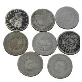 United States type coins, currency, silver dollars |