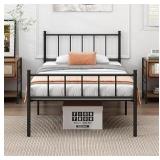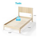 VINGLI - Twin Wood Platform Bed Frame with Flutted Headboard, Sturdy Solid Slats & Under Bed Storage, Wood Color