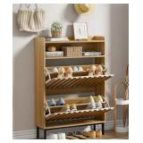 Mid Century Shoe Organizer Rack Hidden Shoes Storage Cabinet with 2 Flip Drawers for Hallway