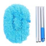 Extra Long Round Duster 360 Degree Rotation Multifunctional Washable Ceiling Fan Duster for High Ceilings Furniture with Jointed Extension Rod, Soft Fiber Material (Blue) 2-PACK