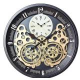 Industrial Wall Clock, Non-Ticking Vintage Moving Gear Battery Operated Original Antique Steampunk Decor Metal Clock for Living Room, Farmhouse, Home Kitchen (Gold-Black, 18 Inch)