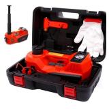 Auto-Lift & Time-Saving: 12V electric car jack lifts 5-ton vehicles up to 17.7" in 60 seconds. High hydraulic efficiency outperforms manual jacks. Powerful motor suits sedans, SUVs, and trucks. Easy to use—even first-time users can lift with confidence All-in-One Tire Inflation Solution: Built-in air pump inflates standard car tires 2 minutes. Real-time pressure gauge ensures accurate inflation. Includes multiple nozzles for cars, bikes, and motorcycles. A versatile tool for tire maintenance anytime Safe & Reliable: Electric jack uses a stable hydraulic system with automatic stop at max height or overload. Self-locking design prevents slippage during use. Includes pressure relief wrench plus LED and warning lights for safe tire work, even at night Versatile Car Repair Tool Kit: This portable jack kit comes with a durable toolbox containing sockets, air nozzles, gloves, etc. The red triangle on the case as a warning sign. A complete and convenient solution for tire replacement