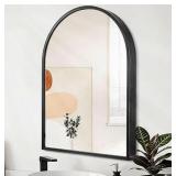 Black Arched Wall Mirror Aluminum Alloy Frame Bathroom Mirror Brushed Metal Vanity Wall Mounted Mirror for LivingRoom Bedroom Entryway Room Home Decor 16"x12"