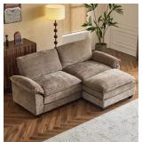 85.4 in. W Pillow Top Arm Double-layer Cushion Chenille Sofa in Brown With Ottoman (COMES IN 2 BOXES)
