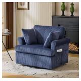 Blue Corduroy Arm Chair with Wood Swivel Base