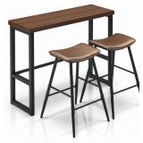 MSRP $223.00 Curved Saddle Seat Design: The bar chairs adopt a thoughtful curved PU saddle seat surface that fits the human body curve perfectly, relieving pressure on your hips and thighs during long-time sitting, providing exceptional comfort for daily use and social gatherings. Sturdy & Durable Multi-Material Construction: Made of 5cm thick hollow board (tabletop), iron (support frame) and soft wear-resistant PU (chair upholstery), this bar set is built to last with strong load-bearing capacity and resistance to daily scratches and wear, ensuring long-term stable use. Practical Size & 1 Table 2 Chairs Configuration: The bar table measures 47.2"×15.4"×39.4", offering spacious tabletop for placing drinks, fruits, snacks and bar accessories; each bar chair measures 31.3"×20.1"×19.5". The 1+2 matching set is ideal for small family use or intimate friend gatherings, meeting your daily bar and leisure needs. Classic & Versatile Style: Featuring a timeless finish, this bar table and chairs set has a simple and elegant appearance that easily matches various home decoration styles, including modern, industrial, farmhouse and minimalist, suitable for bar area, kitchen island, living room and dining nook.