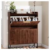 VINGLI 2 Drawer File Cabinet, Home Office Filing Organizer, for Letter Legal A4 Size File Folder Storage, Modern Style Fluted Design, Wood Lateral Filing Cabinet, Printer Stand, Dark Walnut - $125.99