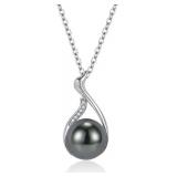 Tahitian Pearl Necklace, 14k White Gold, Sterling Silver, Black Onyx Pendant,Luxury Tahitian Pearl Necklace, Teardrop Design with Silver Chain