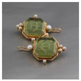 Intaglio Green Crystal Earrings: Victorian Style Gold Jewelry