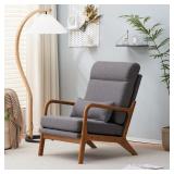 This armchair combines the best of cozy comfort and mid-century design. Upholstered in the fabric of your choice, it offers a classic look and feel that's soft to the touch. This chair's angular frame is made from solid oak wood with a rustic brown finish, while foam filling provides ample cushioning for the seat and back. A stylish coordinating pillow gives it both an added layer of texture and lumbar support. We also love that its overstuffed headrest lets you lean back and sink in after a long day. Place it in your living room or create a reading spot in your guest room. Accommodates up to 330 lbs.