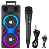 Bluetooth Speakers, Portable Wireless Loud Outdoor Home Party Bluetooth Speaker with Dual 6.5" Subwoofer, FM Radio, LED Colorful Lights, Microphone, Big Powerful Stereo Deep Bass Sound Boombox