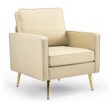 VINGLI Modern PU Leather Accent Chair, Single Sofa Chair with Pocket Coil Seat, Metal Backrest & Solid Wood Frame, Upholstered Armchair for Living Room, Bedroom or Office