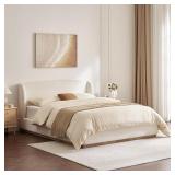 CHITA Queen Size Bed Frame, Upholstered Platform Bed with Wingback Headboard, Wooden Slats Support, Noise-Free, No Box Spring Needed, Cream (Box 2 of 2 Only, Missing Box 1)
