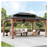 Modern Shade Rosewood Wood Gazebo 12' x 16', Cedar Framed Grill Gazebo with Double Galvanized Steel Roof, Permanent Hardtop Pavilion with Sturdy Hooks for Garden, Backyard, Patio, and Deck (Box 4 of 6 Only)