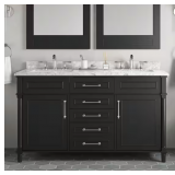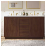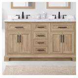 - 60 in. weathered tan vanity with white engineered marble top for a traditional look