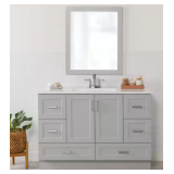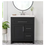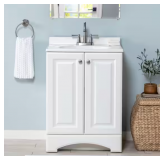 - Vanity cabinet comes fully assembled with countertop and basin attached, backsplash needs to be attached