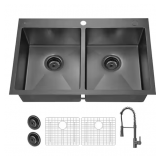- Features two 20.87 in. x 13.58 in. rectangular undermount sinks with overflow, as well as pre-drilled holes for 8 in. widespread faucets - faucets not included