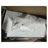 - White engineered marble countertop with single thickness, straight edge, and removable matching backsplash