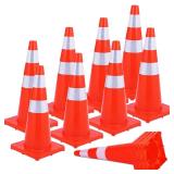 Safety Cones 28 inch 12 Pack, Traffic Cones with Reflective Collars PVC Orange Construction Cones, Parking Cones for Parking Lot, Traffic Control, Driving Training