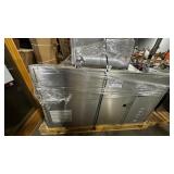 - Heavy‑duty stainless steel construction for durability and easy cleaning. Two large wash basins for simultaneous washing tasks