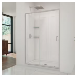 (30). Infinity-Z 48 in. L x 36 in. W x 77 in. H Alcove Shower Door Kit w/ Shower Wall and Center Shower Pan in Brushed Nickel