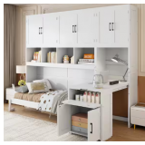 (15). ***4 Boxes*** White Wood Frame Twin Size Murphy Bed Wall Bed with Closet, Drawers and Desk