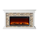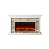 (12). 60 in. Stone Surrounded Freestanding Electric Fireplace in Bright White