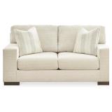 - Classic comfort gets a mod twist with this loveseat. Its minimalistic approach and structured silhouette bring a clean-lined design element to your living room. Sink into the positively plush cushions while relaxing solo, or curl up with a glass of wine while hosting guests. And with light neutral upholstery that suits both casual and contemporary spaces, this loveseat offers endless style possibilities.