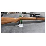 29R.      J.C. Higgins (Sears) – Mod. 52 (Sako L46 Action) – 222 Rem. Cal. Bolt Action Rifle – w/26” Barrel w/Ramp Blade Front Sight (No Rear Sights) – Blued Finish – w/Deluxe Checkered Capped Pistol Grip Wood Stock w/Factory Butt Plate – Period J.C. Higgins Rifleman Senior 6x Rifle Scope & Rings – Circa 1958-1962