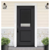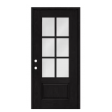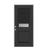 (44) Legacy 30 in. x 80 in. 1/2 Lite Clear Glass Noir Miniblind RHIS Black Finish Fiberglass Prehung Door w/4-9/16 in.